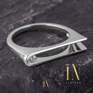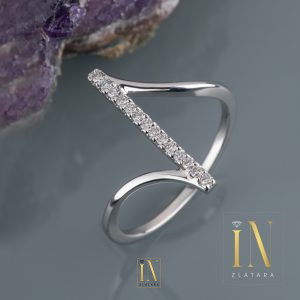 Prsten interesantnog dizajna od belog zlata sa brilijantima