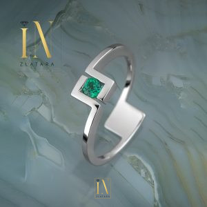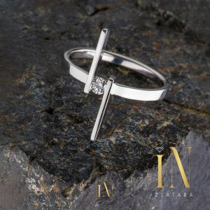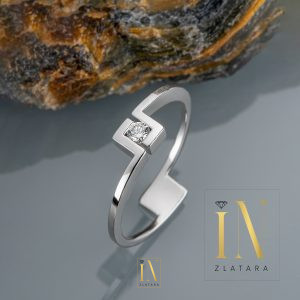 Prsten unikatnog dizajna od belog zlata sa brilijantom