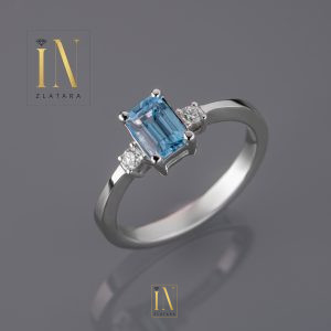 Verenički prsten od belog zlata sa topazom i brilijantima