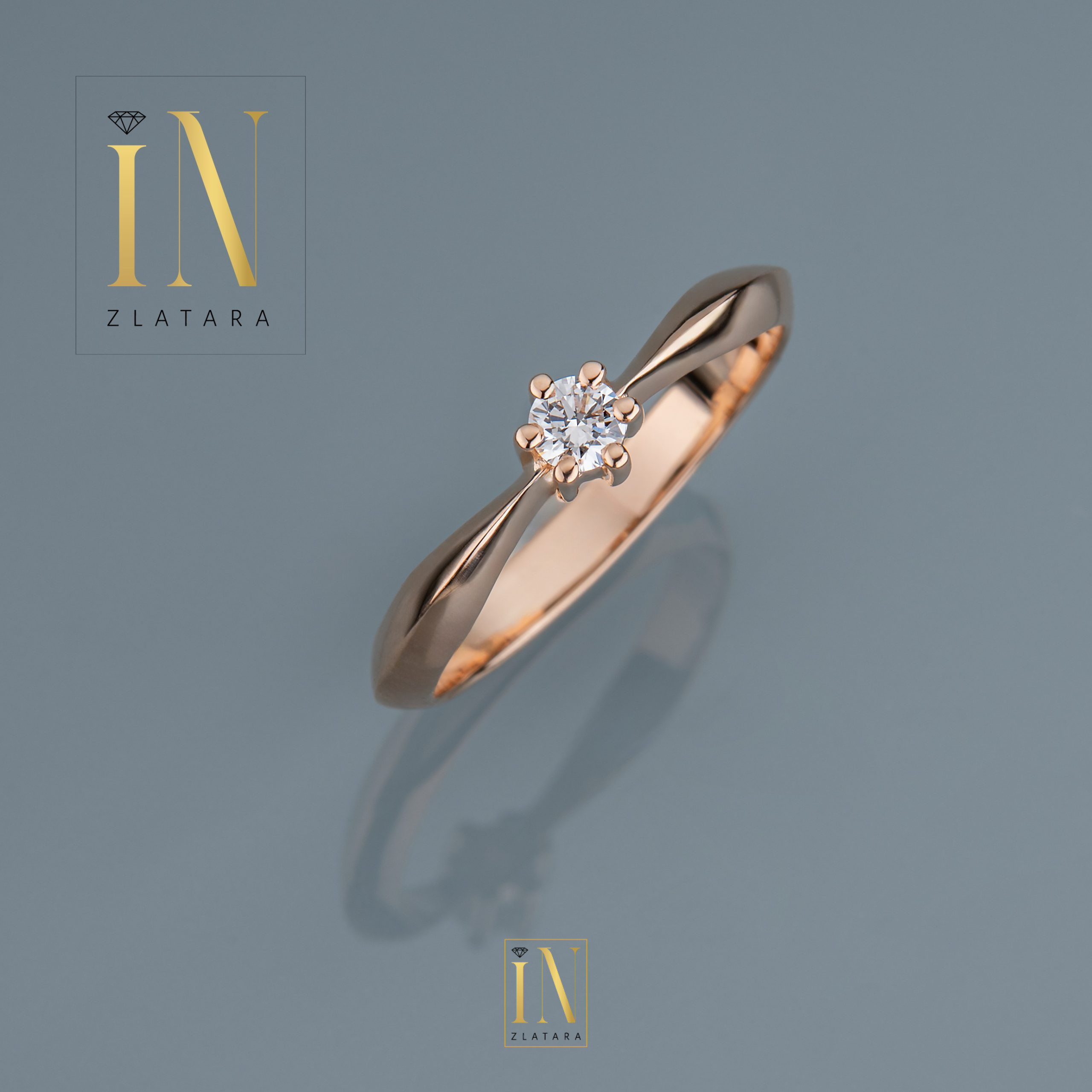 Verenički prsten od roze zlata sa brilijantom