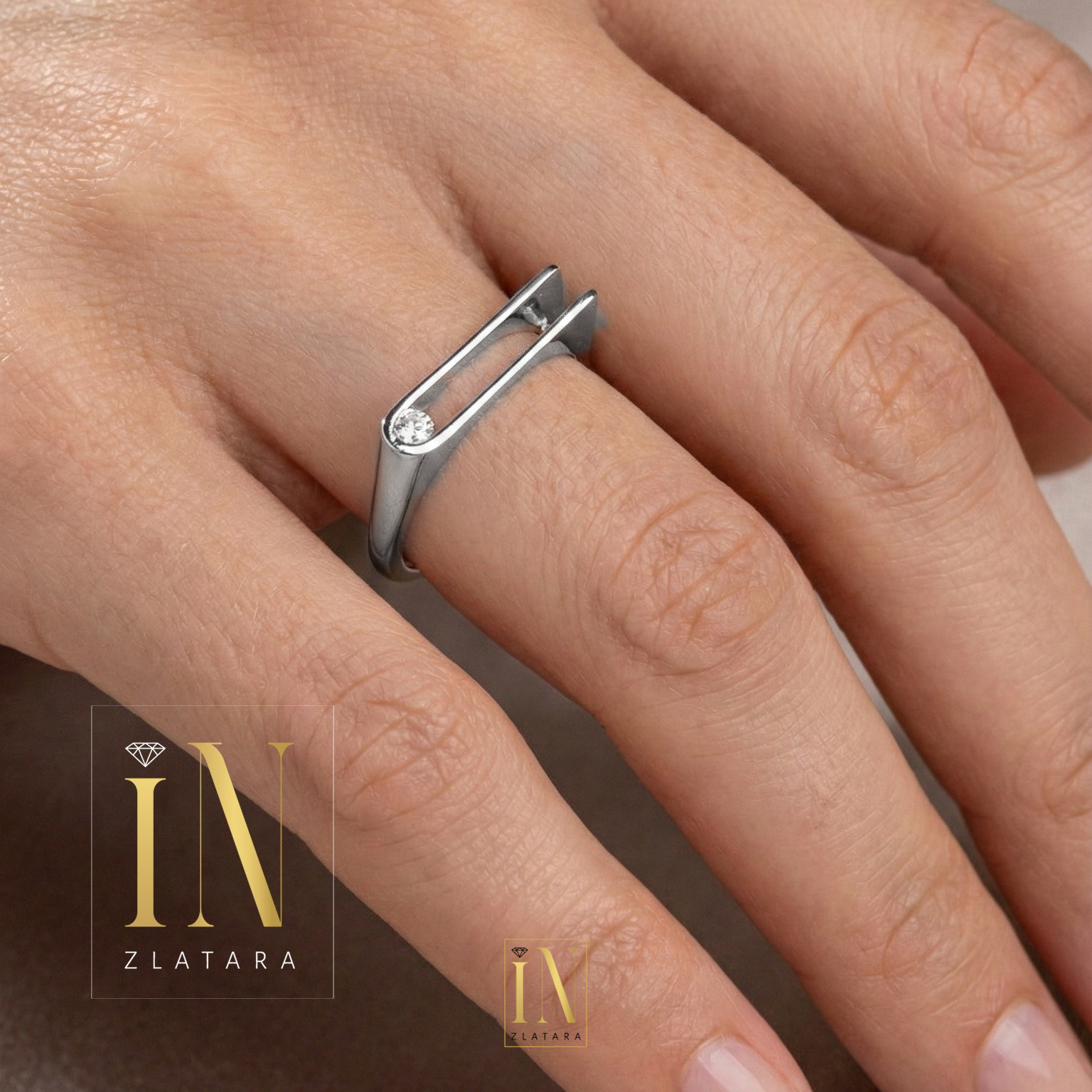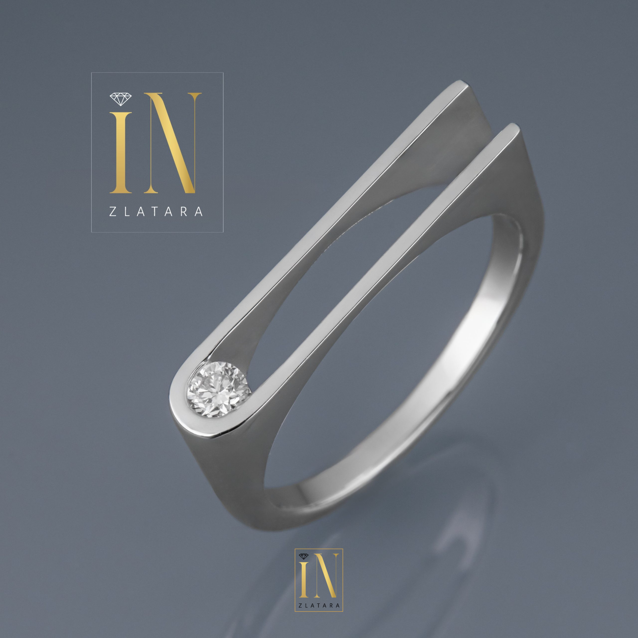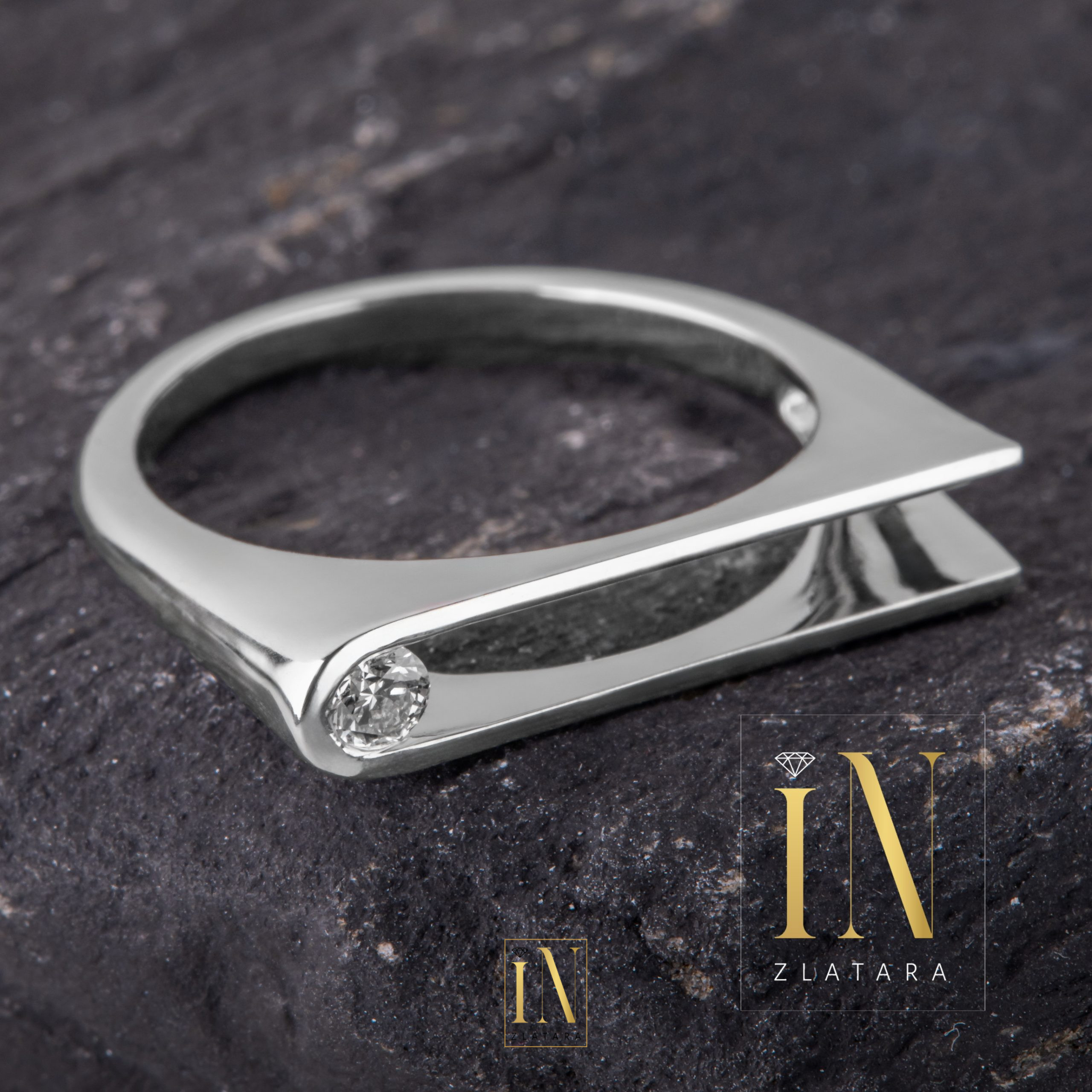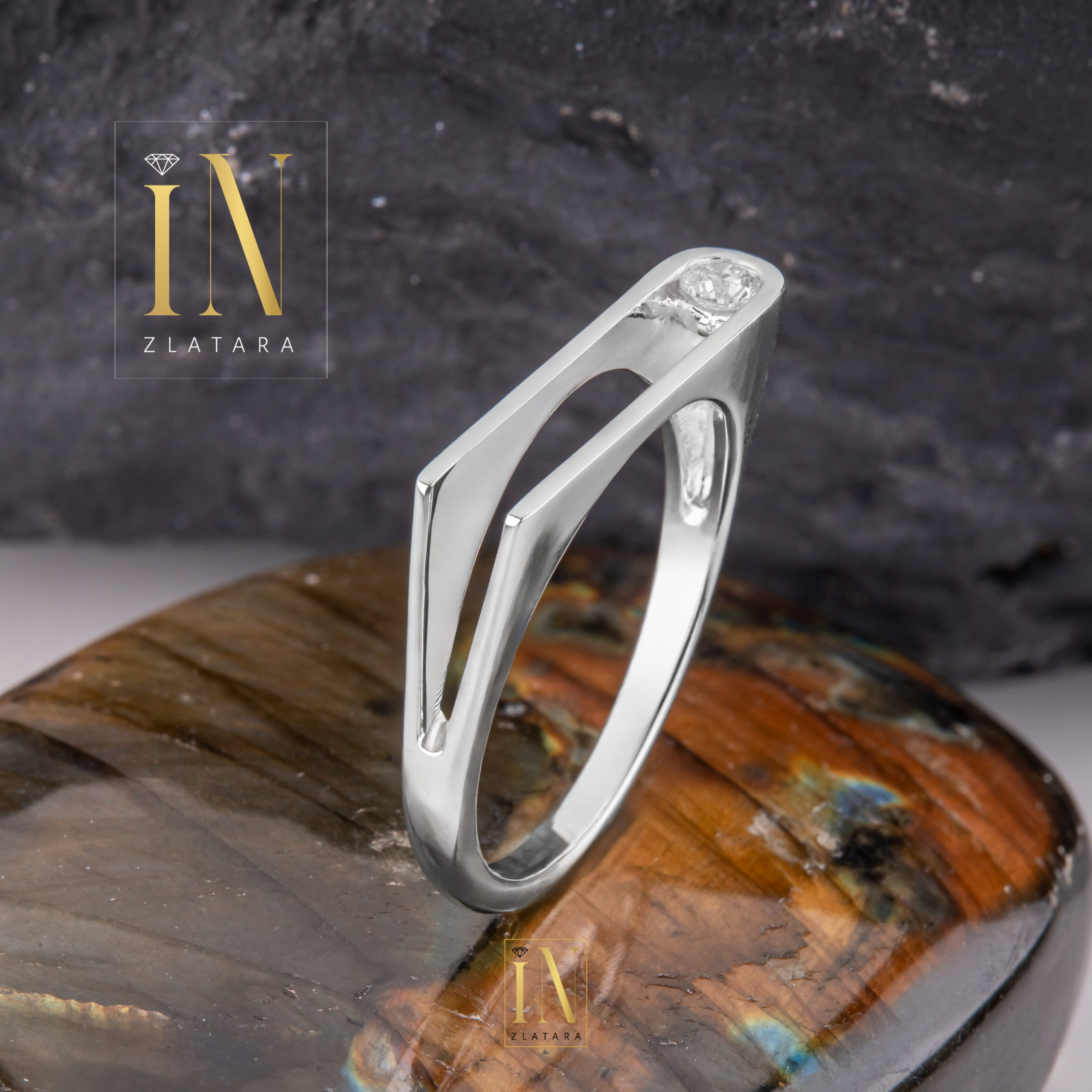 Prsten unikatnog dizajna od belog zlata sa brilijantom 0,09 ct VS/G